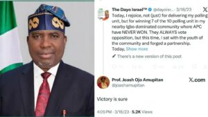 The tweet, which was reportedly deleted, showed Amupitan celebrating All Progressives Congress victories in polling units, a public expression of political preference that opponents say is incompatible with the neutrality required of someone who oversees elections.